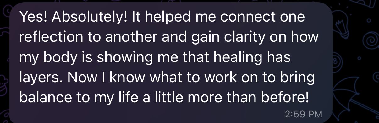 This free 30-minute alignment call is a zero-commitment, no pressure call for us to connect so that I can learn more about you, where you feel stuck and what you're working towards. From there, I can give you some high-level intuitive guidance through connecting with your Higher Self to see what would be the most aligned path for you right now. This is a no-pressure space to get clarity, connect, and receive personalized insight on your transformation journey.